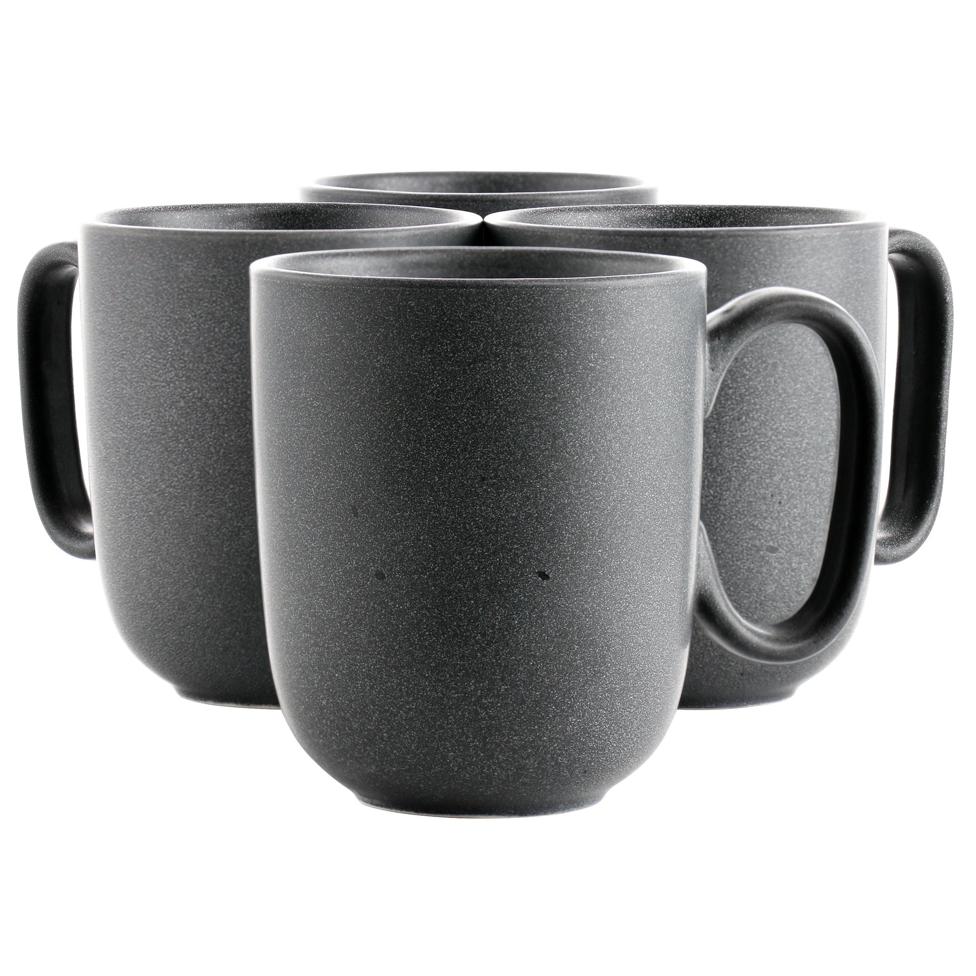 Enjoy a warm cup of coffee, tea, and more with these Our Table Landon 4 Piece 15 Ounce Round Stoneware Mug Set. These mugs are made from durable stoneware and the sleek gray color includes reactive glaze making each mug unique from each other. With a 15 ounce capacity, these can hold the perfect amount of drink for anyone. They are even dishwasher and microwave safe making them great for everyday use and easy to clean up. With a service for 4, you can have coffee or tea with your friends and family.