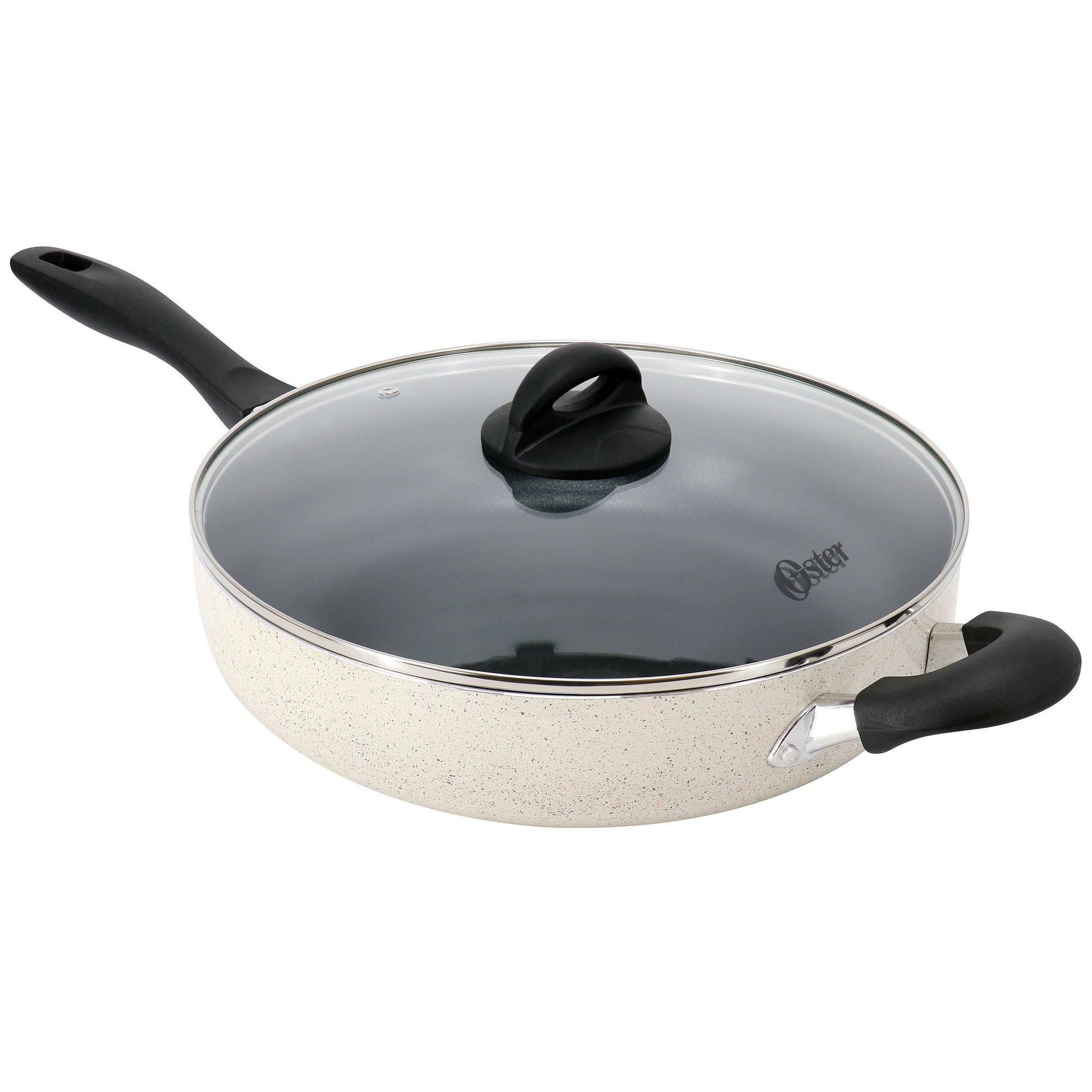 Oster Clairborne 5 Quart Aluminum Nonstick Saute Pan with Lid in Sand