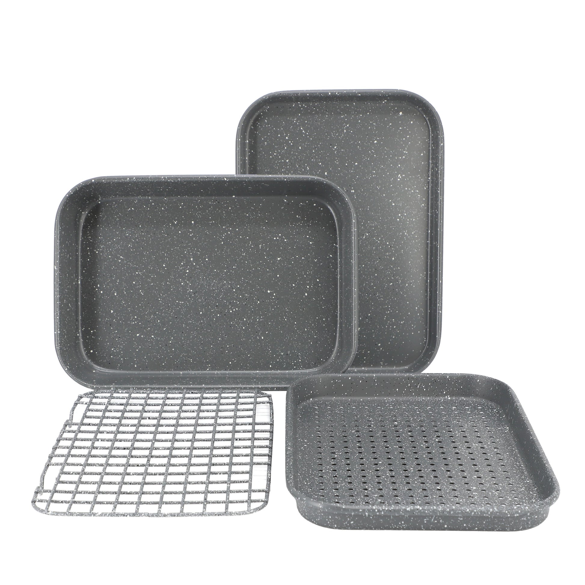 Oster Greystone 4 Piece Nonstick Carbon Steel Toaster Oven Bakeware Set in Speckled Grey