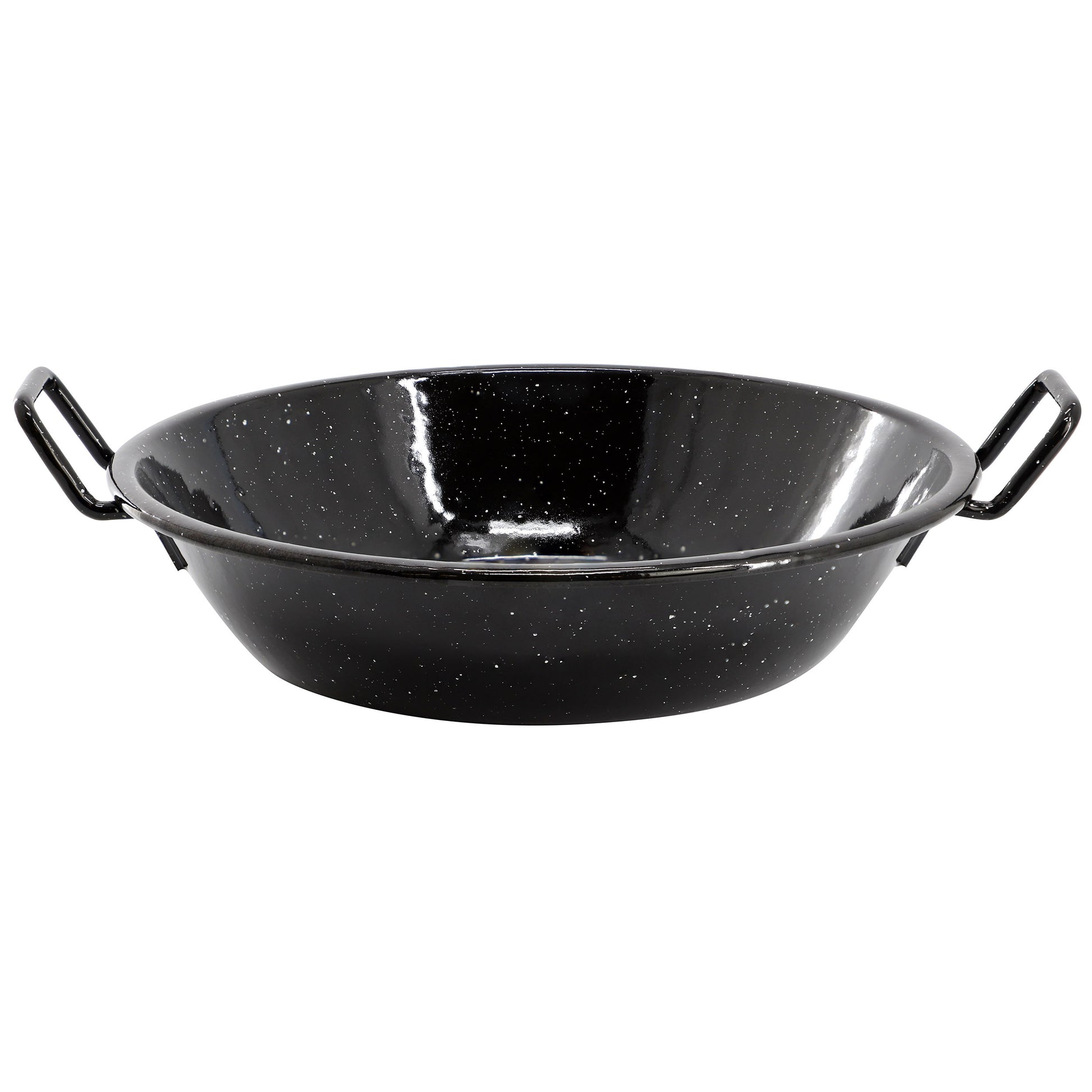 The speckled black enamel finish not only adds a touch of elegance to your kitchen but also provides a smooth surface that's easy to clean and resistant to staining and scratching. The pan features side handles for a secure grip, making transport a breeze. With its durable construction and chic design, the Oster Castillo Paella Pan is sure to become a go-to tool in your culinary arsenal.
