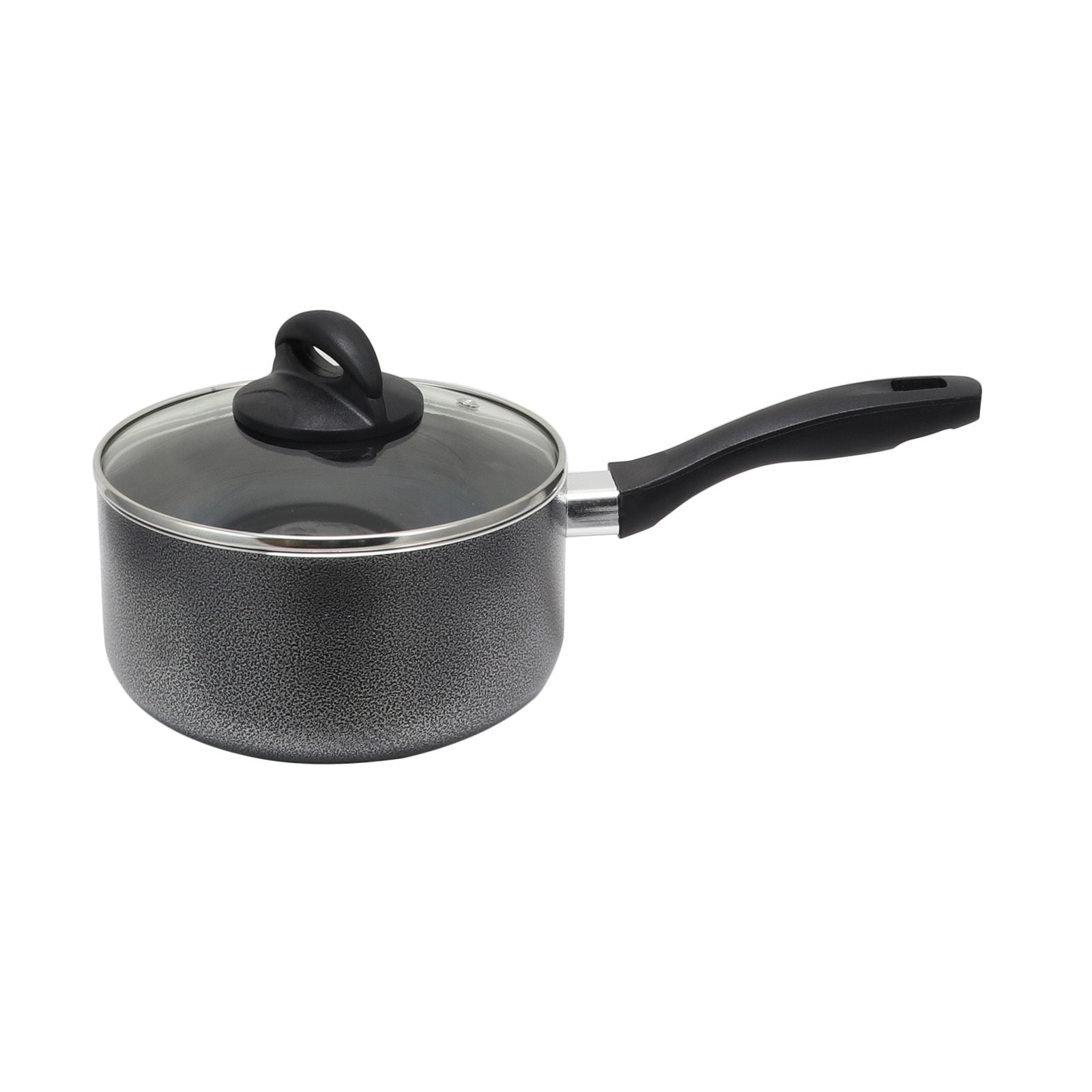 Includes: 1 Gray 2.5 Quart Aluminum Sauce Pan with 1 Paired Glass Lid