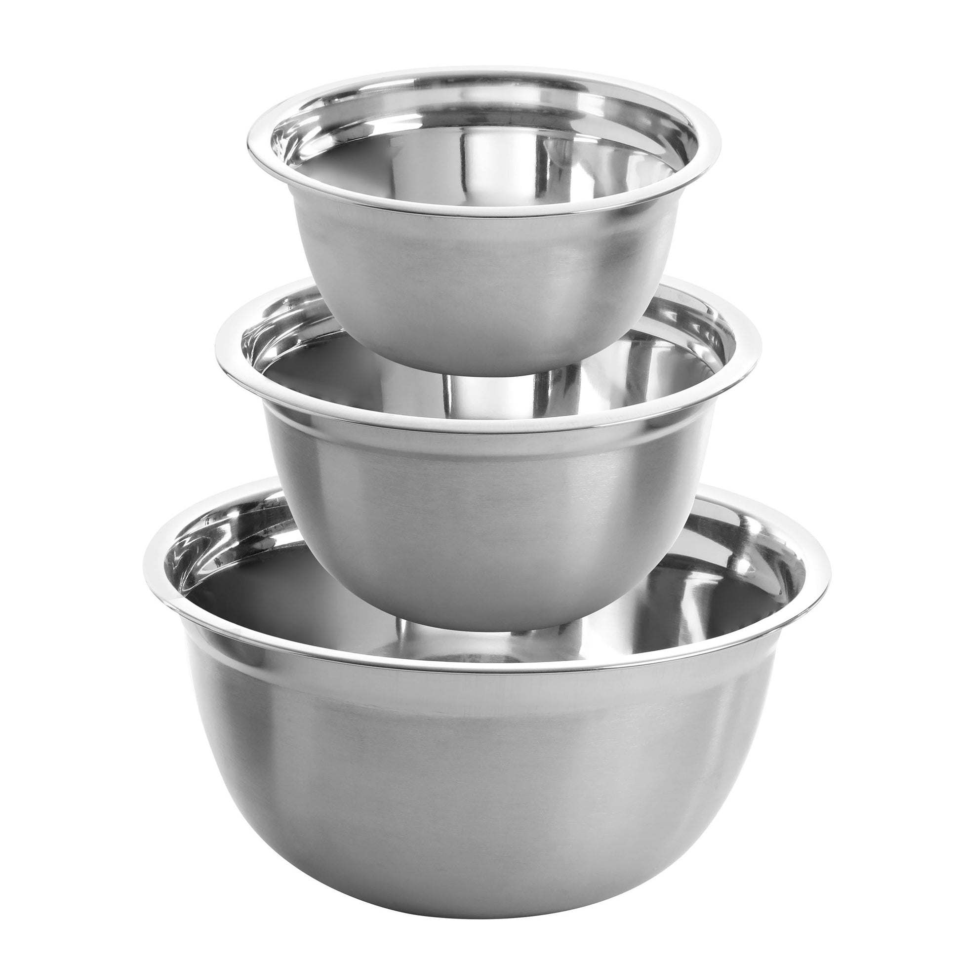 The Oster Rosamond 3 Piece Stainless Steel Mixing Bowl Set is perfect for a variety of food prep and storage. Set comes with three different sized bowls- 1.5qt, 3qt, and 5qt- for all types of uses. Prepare marinades, mix batters, store chopped fruits and veggies, prepare salads, and more with this three piece prep set. Constructed of lightweight but durable stainless steel for long lasting use, this bowl set is made with a nest-able design for convenient space saving storage. Hand wash recommended.