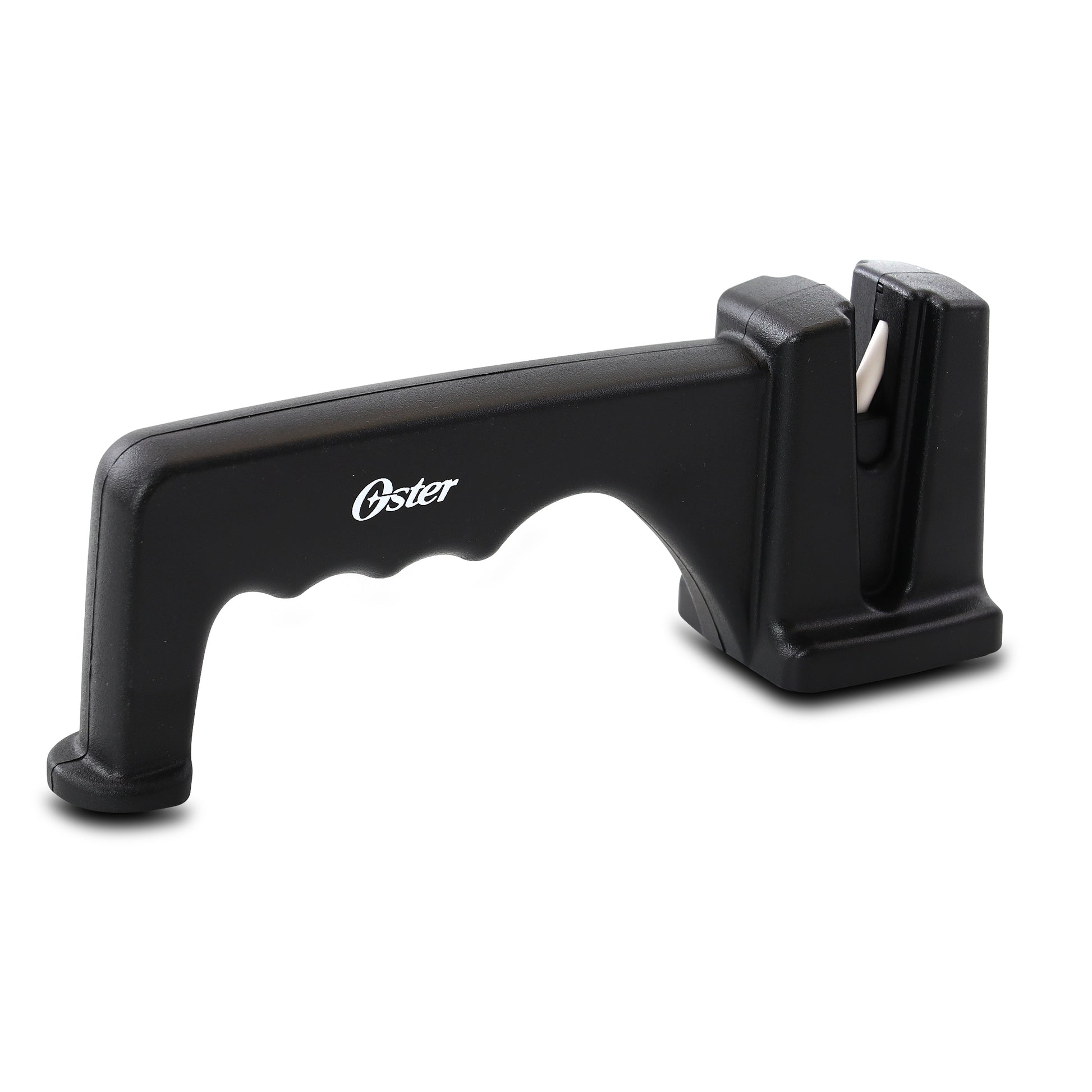 The Oster Trussville Knife Sharpener in Black is great for sharpening a vast assortment of blades. This kitchen tool is ideal for dull blades exposed to everyday use as well as large knives fit for specialized cooking. The Non-slip base and ergonomically designed handle allow for a safe and secure grip while sharpening. The sharpener is crafted from light weight plastic, making it convenient to move and adjust the angle for easier sharpening.
