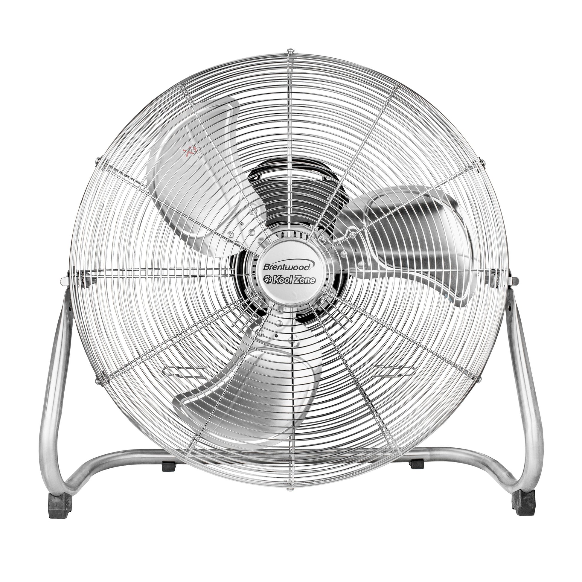 Use the 180 watt Brentwood Kool Zone 2-Speed 20"" 3-Speed 22"" High Velocity Floor Fan to produce intense cooling. Use this fan to create full room circulation saving you energy and money. Choose between 3 levels of powerful speeds. Direct air flow by pivoting the adjustable head. Easily move the fan from room to room using the built-in carry handle. Conveniently wrap the cord up for storage. Non-skid rubber feet keep the fan securely in place. Remove the grill without tools for easy cleaning. Add a classic aesthetic to your home or work space with this chrome metal floor fan.