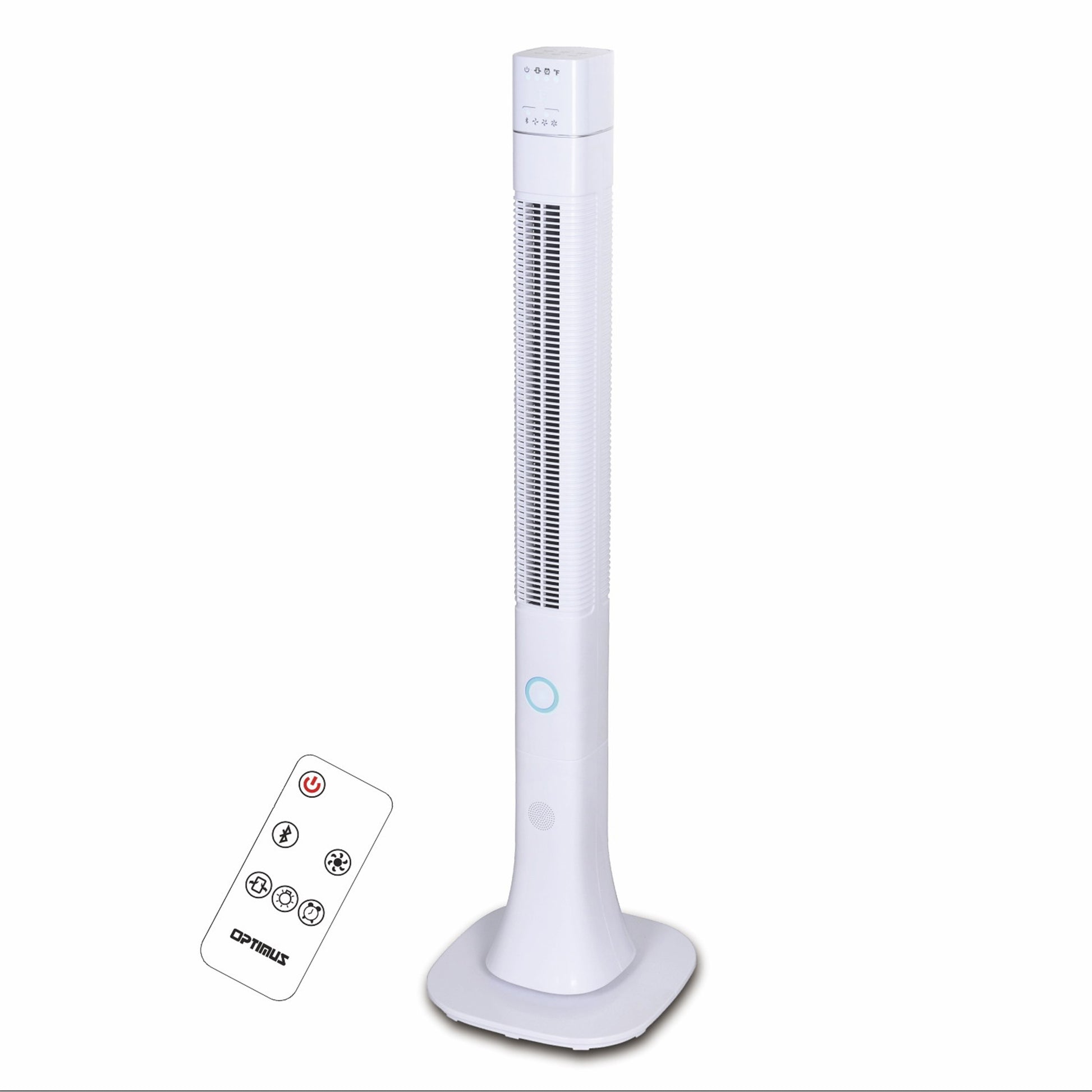 Optimus 48 Inch Pedestal Tower Fan with Remote Control, Bluetooth and LED