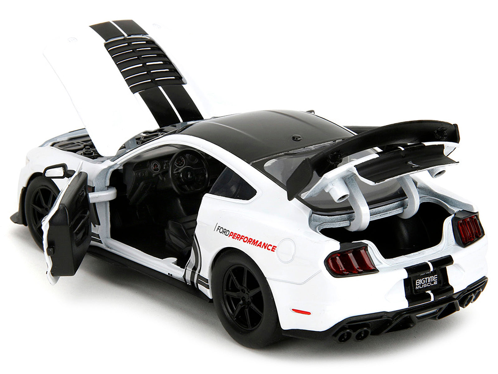 - Brand new 1/24 scale diecast car model of 2020 Ford Mustang Shelby GT500 #65 White with Black Top and Stripes "Ford Performance" "Bigtime Muscle" Series die cast model car by Jada.