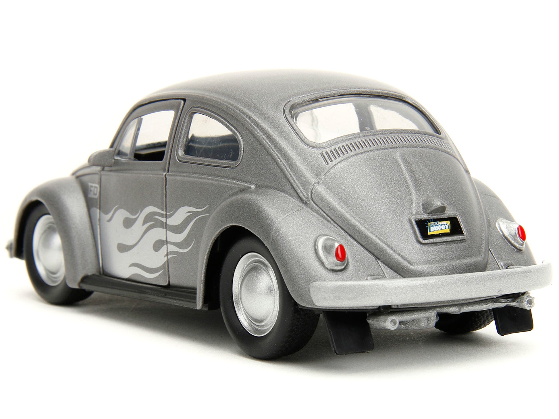 - Brand new 1/32 scale diecast car model of 1959 Volkswagen Beetle Gray Metallic with Silver Flames and Boxing Gloves Accessory "Punch Buggy" Series die cast model car by Jada.
